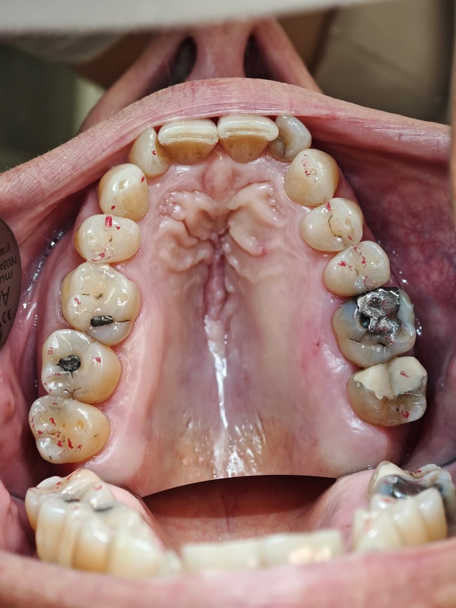 Nach Aves Galerie starte ich Google Fotos; die Bilder werden automatisch hochgeladen. Als Sicherungsqualität empfehle ich „Speicherplatz sparen (etwas geringere Auflösung)" – deutlich kleinere Dateien, kaum sichtbarer Qualitätsverlust. Am PC lade ich die Bilder herunter, kopiere sie ins PVS, maile sie ggf. verschlüsselt an den Zahntechniker. Der Verzicht auf SD-Karte spart spürbar Zeit. Die Übersichtsaufnahmen für den ZTM als Okklusionsprotokoll entstehen mit einem günstigen, LED-beleuchteten Stahlspiegel.