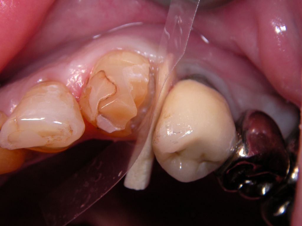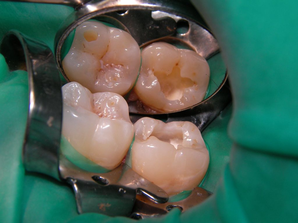Wie ich auf der Amalgamseite diskutiert habe, verwende ich Kunststoff in sehr großen Defekten in Backenzähnen nicht (mittlerweile doch, aufgrund des Amalgamverzichts, s. o.). Je größer und tiefer dort die Kunststofffüllung ist, desto schlechter die Langzeithaltbarkeit, desto größer das Risiko für den Zahnnerven. Gegen Kunststofffüllungen gibt es übrigens häufiger Allergien als gegen Amalgam, und leider wachsen auch Bakterien unter Kunststoff deutlich besser als unter Amalgam, wie man in dieser Übersicht nachlesen kann.